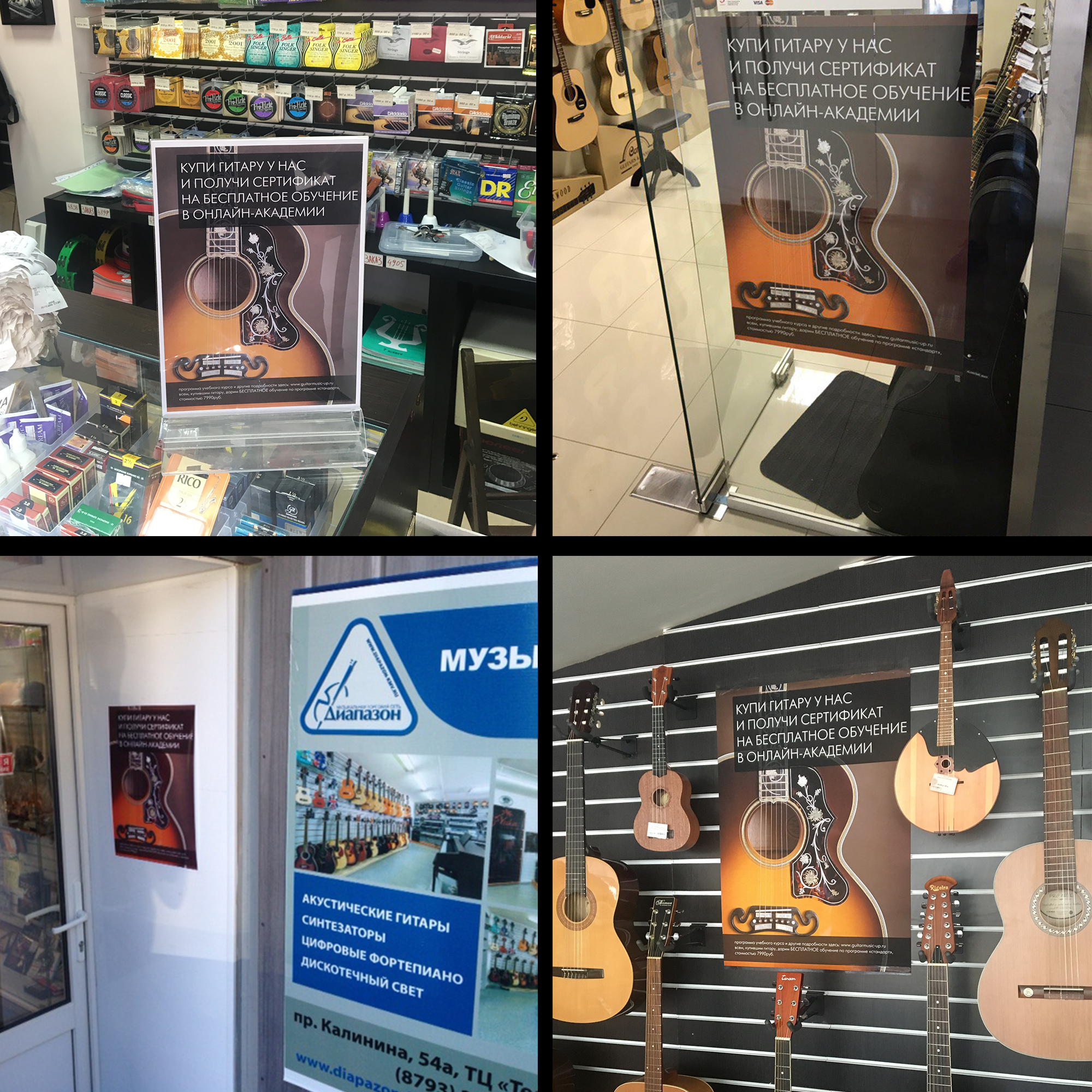 Ряд клиентов, которые приходят к вам и не знают о таком сервисе, приятно удивляются, получая в подарок бесплатное обучение. Даже, если гитарист умеет уже играть и получает промо-код на бесплатное обучение, он может записаться, например, на курс по вокалу, на звукозапись, или на продвинутый курс по гитаре. В любом случае, клиент получает намного больше, чем ожидает, а именно это запускает самую мощную рекламу - "сарафанное радио". С каждым месяцем растет статус вашего магазина, особенно на фоне конкурентов и увеличивается поток клиентов к вам.